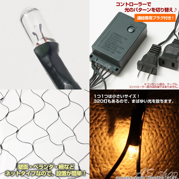 約2mのビックサイズネットライト ナイアガライルミ 屋外使用OK!防雨・防滴仕様 クリスマスイルミネーション 320灯ネット式カーテンライト